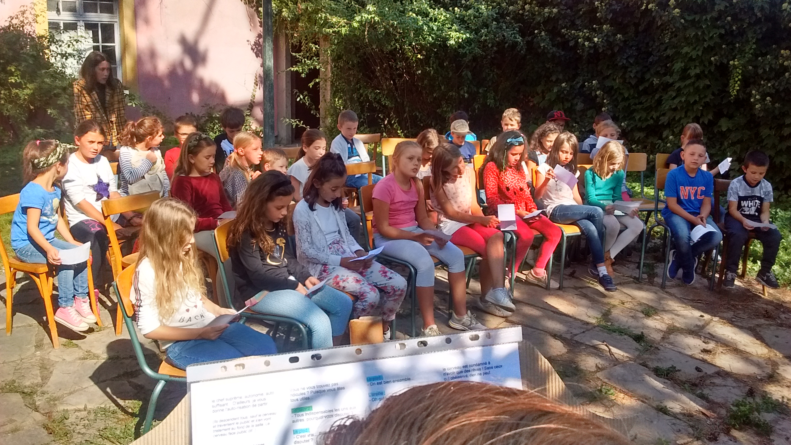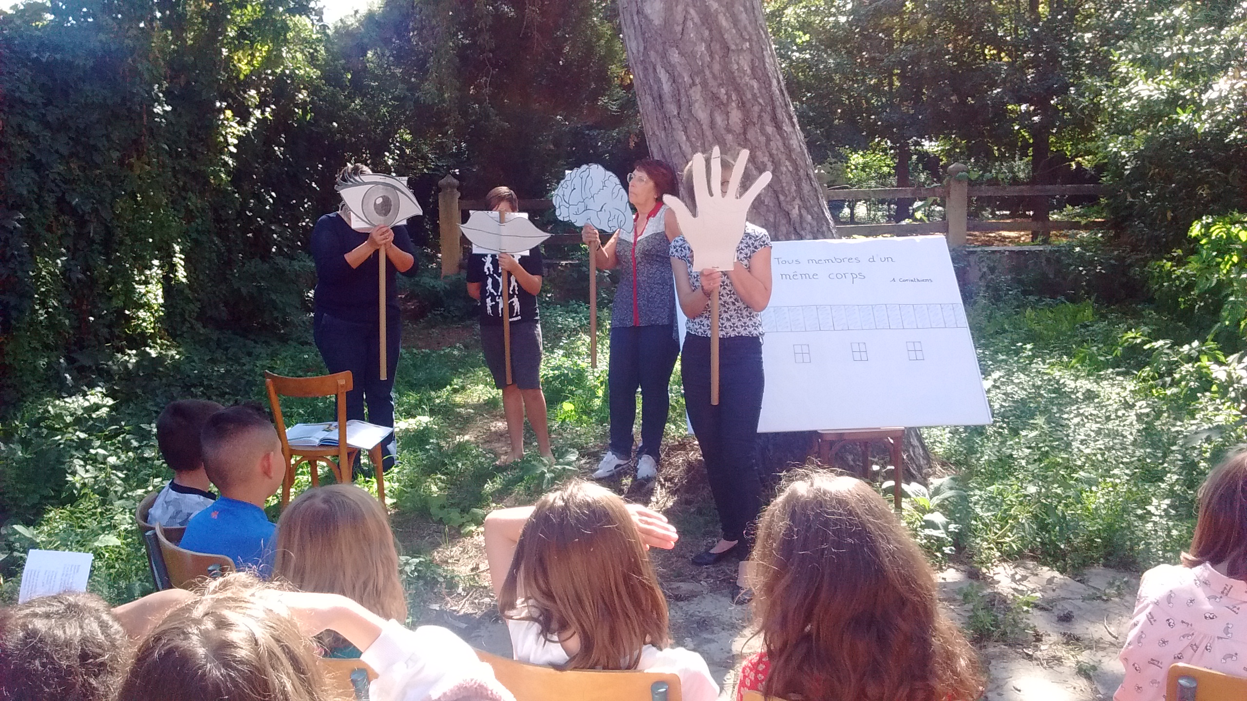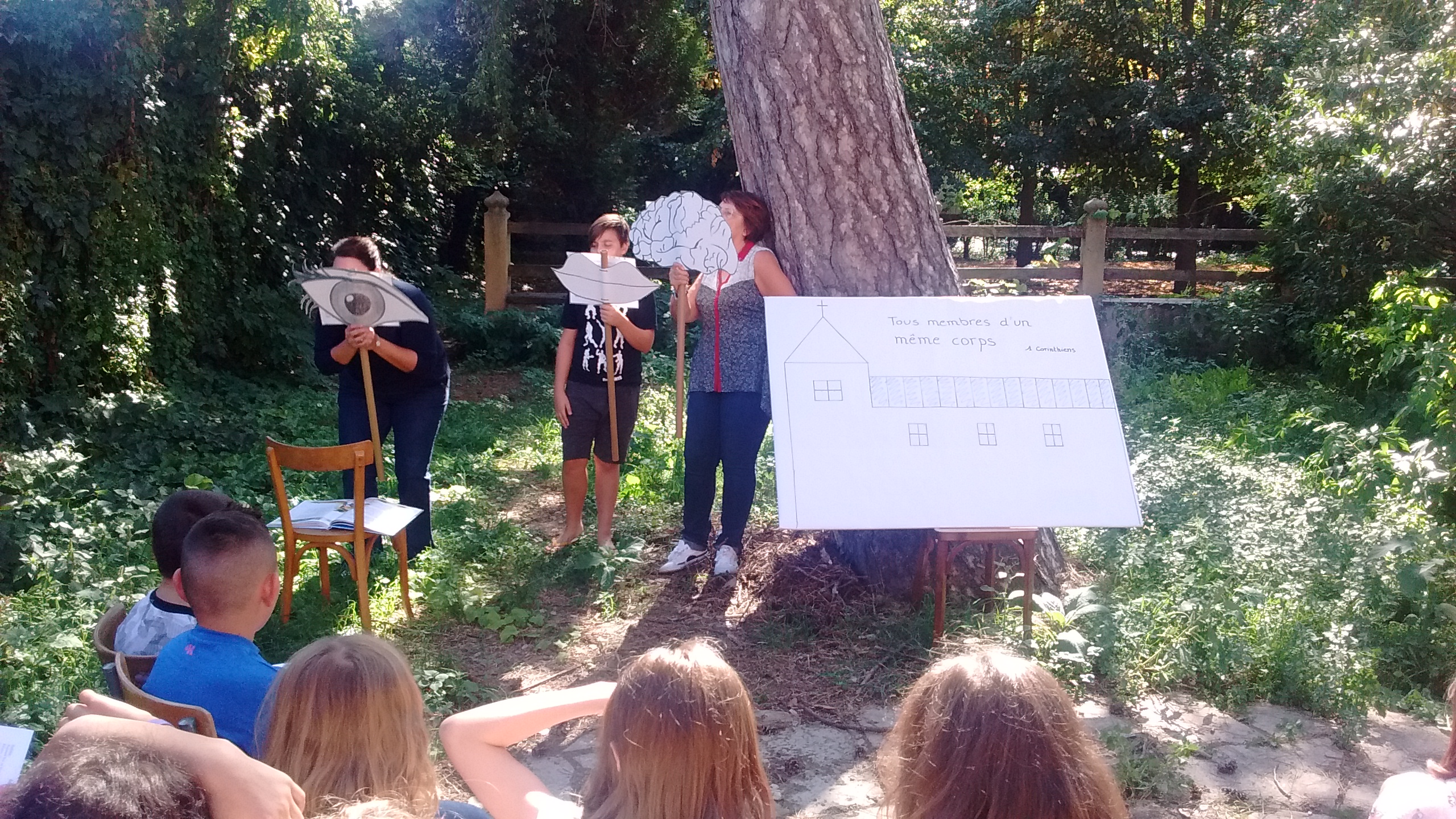 Ils ont écouté un petit sketch mettant en scène différents membres du corps humain, pour ensuite échanger et réfléchir aux différents membres de l’Eglise qui composent le Corps du Christ.